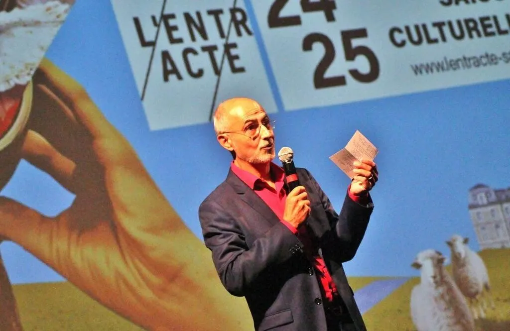 Roland Bouchon, le directeur de l’association l’Entracte, lors de la soirée de présentation de la saison culturelle, vendredi 13 septembre 2024, sur la scène Joël-Le Theule, à Sablé-sur-Sarthe. © Ouest-France