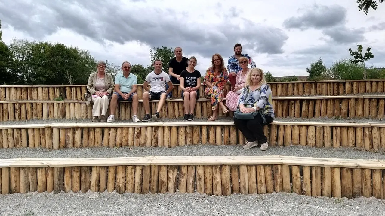 Les représentants des différents services de la commune (élus, l’Éolienne, espaces verts….) ont essayé le nouvel amphithéâtre de Tertifume. © Ouest-France