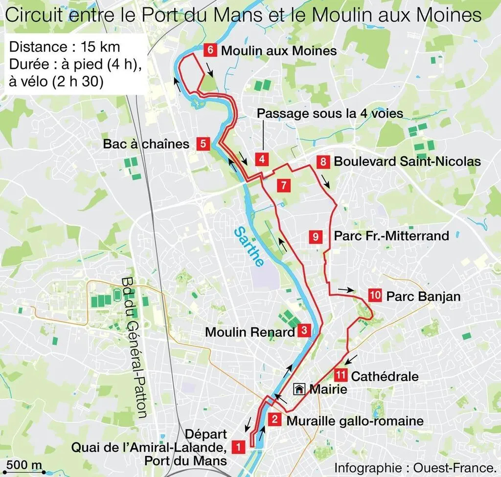 Chaque semaine, Ouest-France vous fait découvrir une boucle à vélo dans le département de la Sarthe. Ce samedi 12 août 2023, zoom sur une balade au fil de la rivière, entre ville et campagne, entre Le Mans, Coulaines et Saint-Pavace.