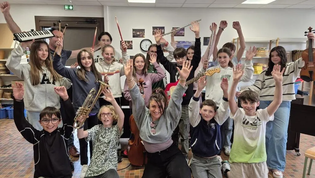 Les élèves de l’EEA répètent avec Dorothée Doyer. © Ouest-France