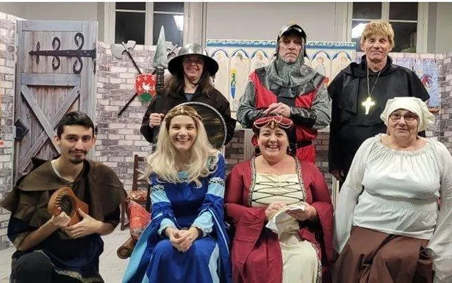 La troupe de comédiens de ce théâtre jouera la comédie « Ça pigeonne chez le baron ! » de Pascal Gérault, adaptée et mise en scène par Nicolas Bouchereau, le président du théâtre du Haut-Maine. Cette comédie nous emmène dans des situations du Moyen Âge qui se mélangent à celles du XXIe siècle. Elle raconte l’histoire de la crise au domaine d’Aymar, Baronnie de Montfaucon. En effet, il n’y a plus un sou dans les caisses. Le seigneur Aymar cherche un bon parti pour sa fille Jeanne afin d’agrandir son domaine et pouvoir renflouer les caisses. Malheureusement, la jouvencelle a déjà un amoureux… Quant à Diane, l’épouse d’Aymar, elle est prête à se sacrifier pour le bien de la Baronnie. Comment la Baronnie retrouvera-t-elle son lustre d’antan ? Nicolas Bouchereau et ses comédiens vont à coup sûr vous régaler.
