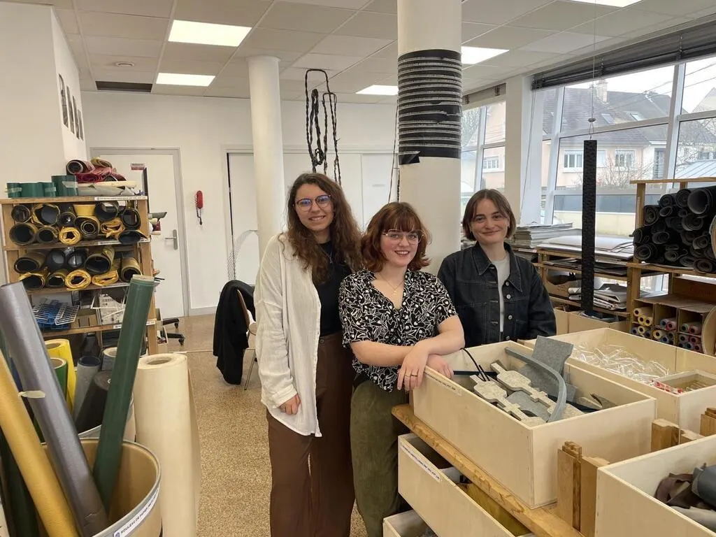 Bettina Laouar, chargée de communication à l’École supérieure d’art et de design TALM, Victoria Kawohl, responsable de la Chutothèque du Mans, et Léa Le Moulec, chargée de coordination des projets à l’ESAD TALM, veillent à ce que les chutes industrielles trouvent une seconde vie. © Ouest-France