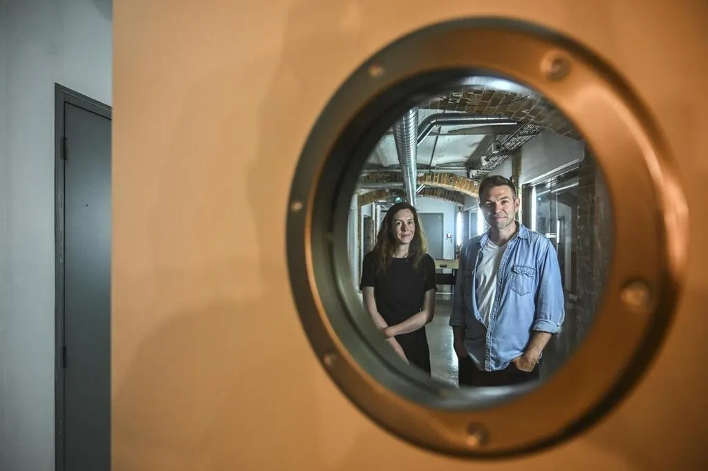 Le Mans, le 18 Juin 2025. Hortense Girard (chargée d’accueil des tournages) et Julien Sénéchal (coprésident de l’association de la Cité du Film) disent au revoir aux locaux de la rue Chanzy. © Le Maine Libre - Denis LAMBERT