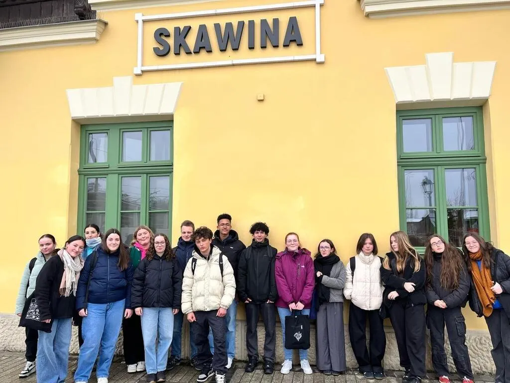 Les élèves réunis à Skawina, dans le sud de la Pologne, à 15 kilomètres de Cracovie. © Cité Scolaire Paul-Scarron