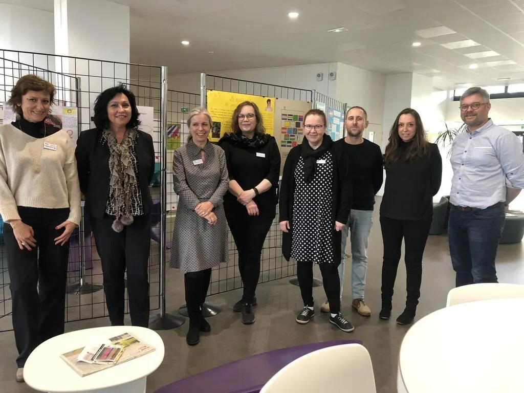 Laurence Gauvin (2e en partant de la gauche), la directrice des études du lycée de la clinique soins-études FSEF Sablé-sur-Sarthe, a accueilli six professeurs venus d’Europe pour échanger avec son équipe enseignante autour d’un projet dans le cadre Erasmus +. © Ouest-France