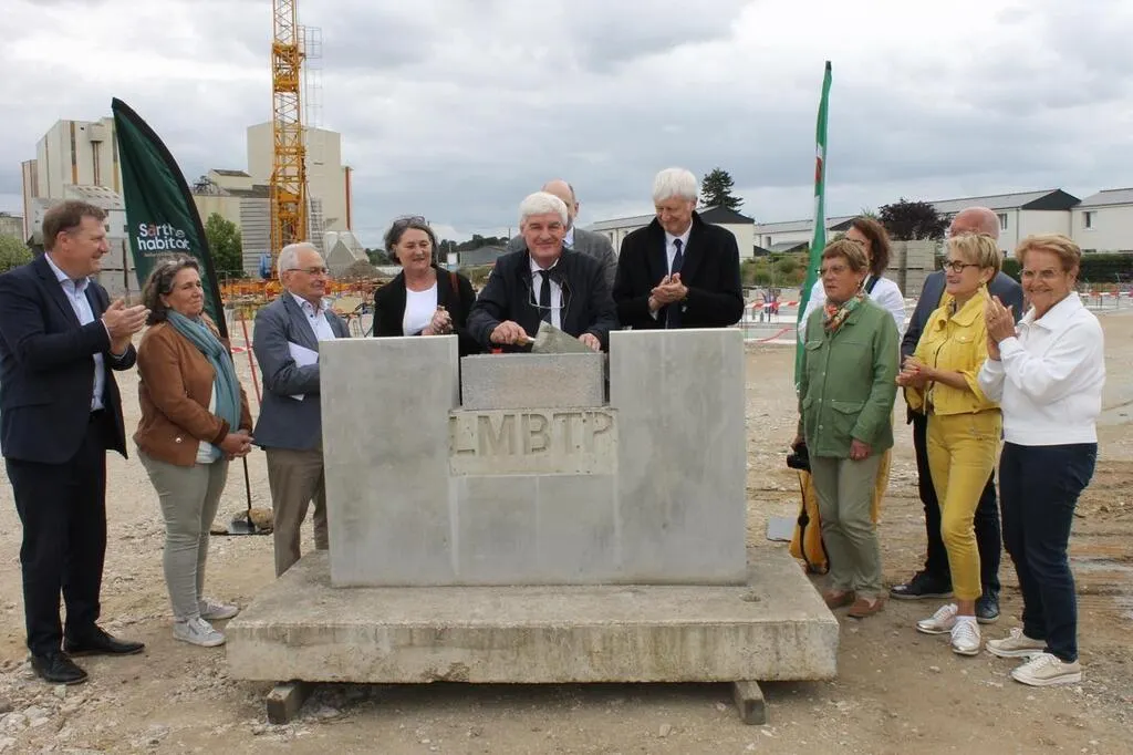 La première pierre du lotissement Bérénice de Sarthe Habitat, sur l’ex-site des tours HLM de Champagné (Sarthe), a été posée lundi 26 mai 2025. Cinquante-six logements locatifs seront livrés entre 2026 et 2027.