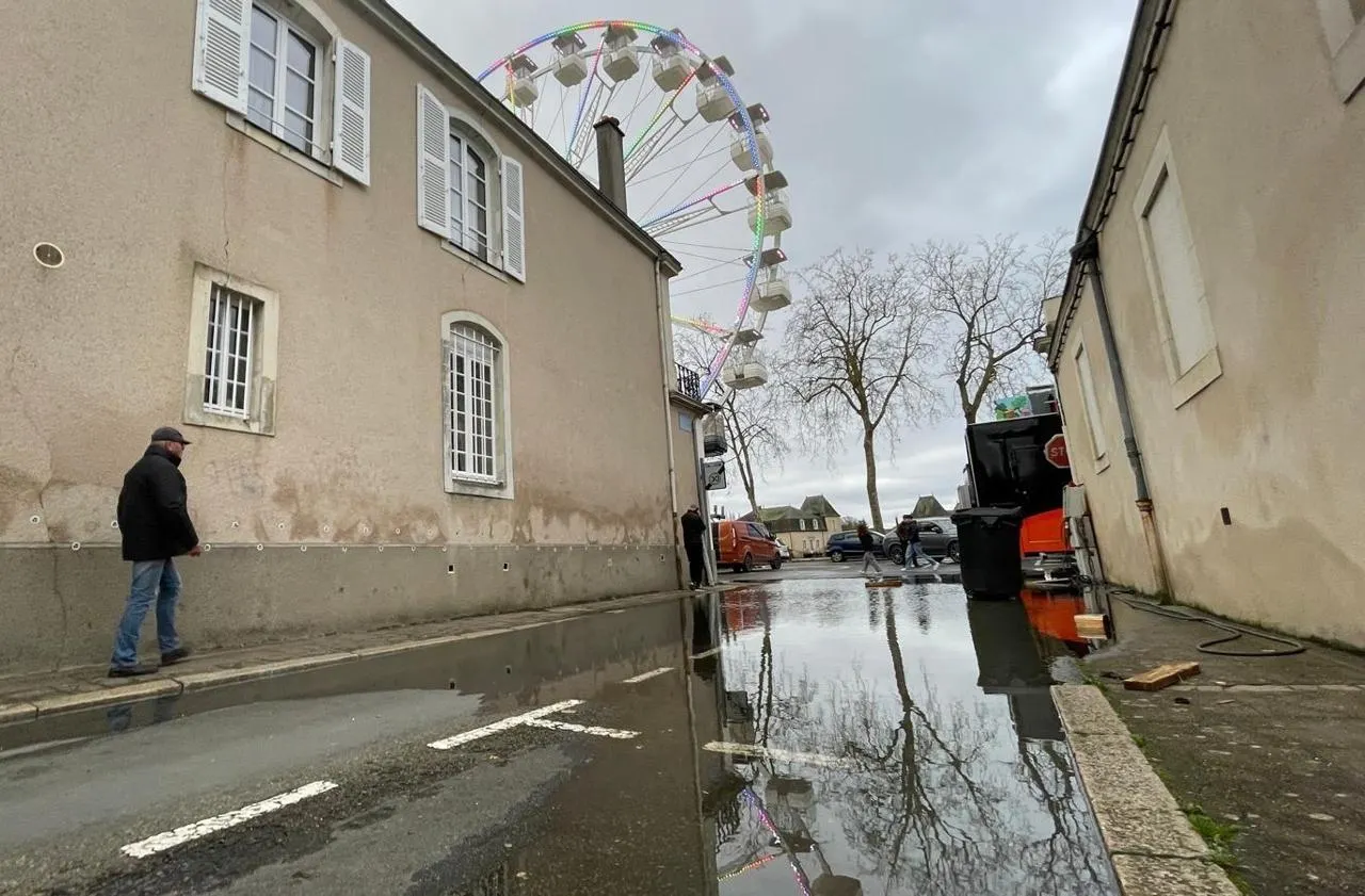 La Foire des cendres est perturbée le week-end du 20 février à cause de la crue du Loir, à La Flèche. © Le Maine Libre - Louis Gohin