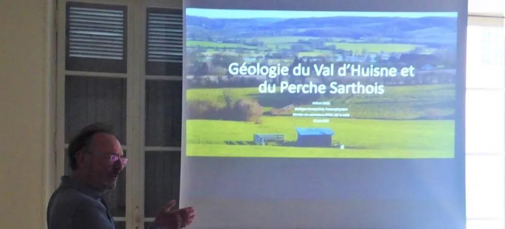D’où la conférence qu’il a donné dans la salle patrimoine de l’office du tourisme, à l’invitation de ladite Société, sous l’intitulé suivant : la géologie du Val d’Huisne et du Perche sarthois. C’était là une manière d’approfondissement des fouilles archéologiques, mais aussi de célébrer les 30 ans d’existence de la Société.