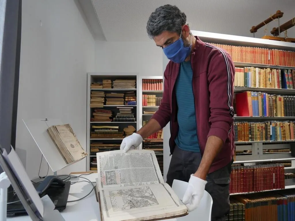 Stéphane Georget s’occupe du fonds ancien de la médiathèque Jean d’Ormesson. © Le Maine Libre