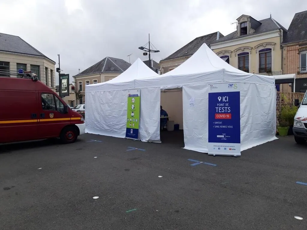 Sur la place du marché, on pouvait trouver hier une grande tente blanche un peu étrange à l’écart : l’ARS (Agence Régionale de Santé) organisait une mission de dépistage et de prévention contre le Covid-19.