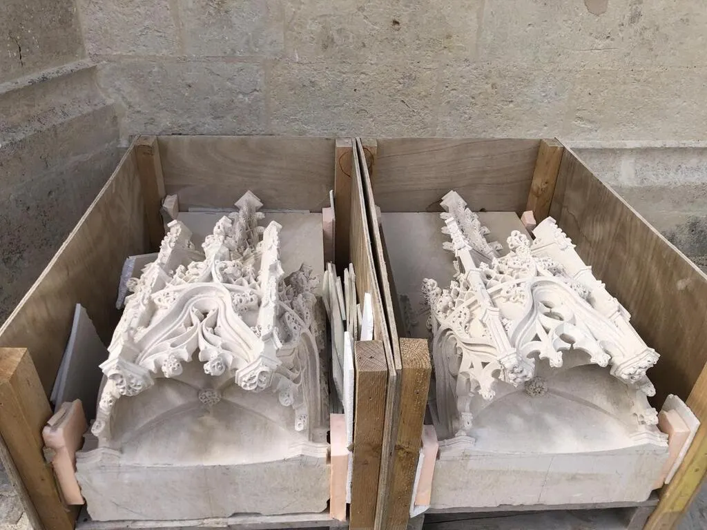 Ils ont été sculptés dans les moindres détails, comme une dentelle de pierre, et seront remis en place dans les jours à venir. Ce n’est pas un défi technique, mais c’est un vrai défi artistique, car il exige de la part de l’entreprise une très grande expérience et compétence dans le domaine de la sculpture, ici gothique. Il exige une habileté rare et peu d’entreprises en France sont capables de le réaliser. En cela, le chantier de Notre-Dame des Marais est « hors norme » car il y en a bien peu en France de cette envergure.