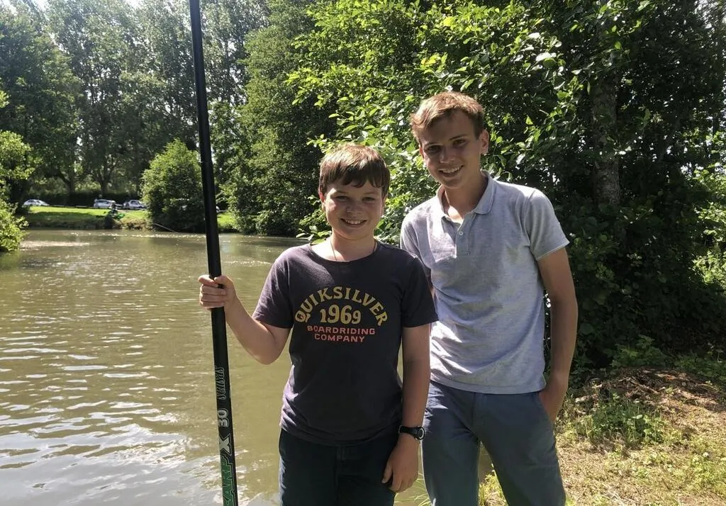 Le jeune Clarence a participé au concours de pêche du 14 Juillet à La Ferté, soutenu par son frère aîné, Vianney. © Le Maine Libre