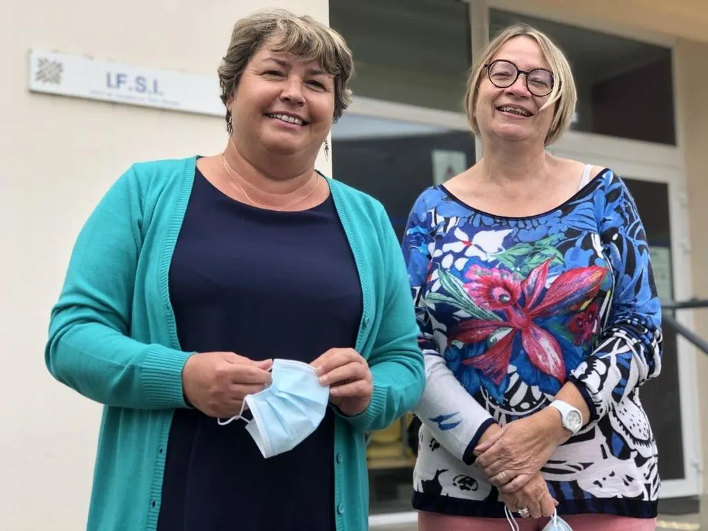 La nouvelle directrice de l’IFSI depuis mai 2021, Florence Collet (à gauche), et Véronique Mautouché (à droite), la coordinatrice de l’institut de formation aide-soignante, le 31 août 2021, à La Flèche. © Ouest-France