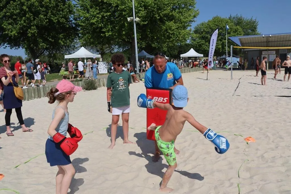 18e Fête des lacs à la base de loisirs de La Monnerie, à La Flèche (Sarthe). Les enfants ont pu s’initier au vovinam viet vo dao sur la plage. © Ouest-France