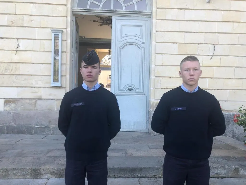 De gauche à droite, Côme Fournier et Étienne David sont élèves au Prytanée à La Flèche (Sarthe). Ce dernier vivra sa première veillée et présentation au drapeau vendredi 23 et samedi 24 septembre 2022. © Ouest-France