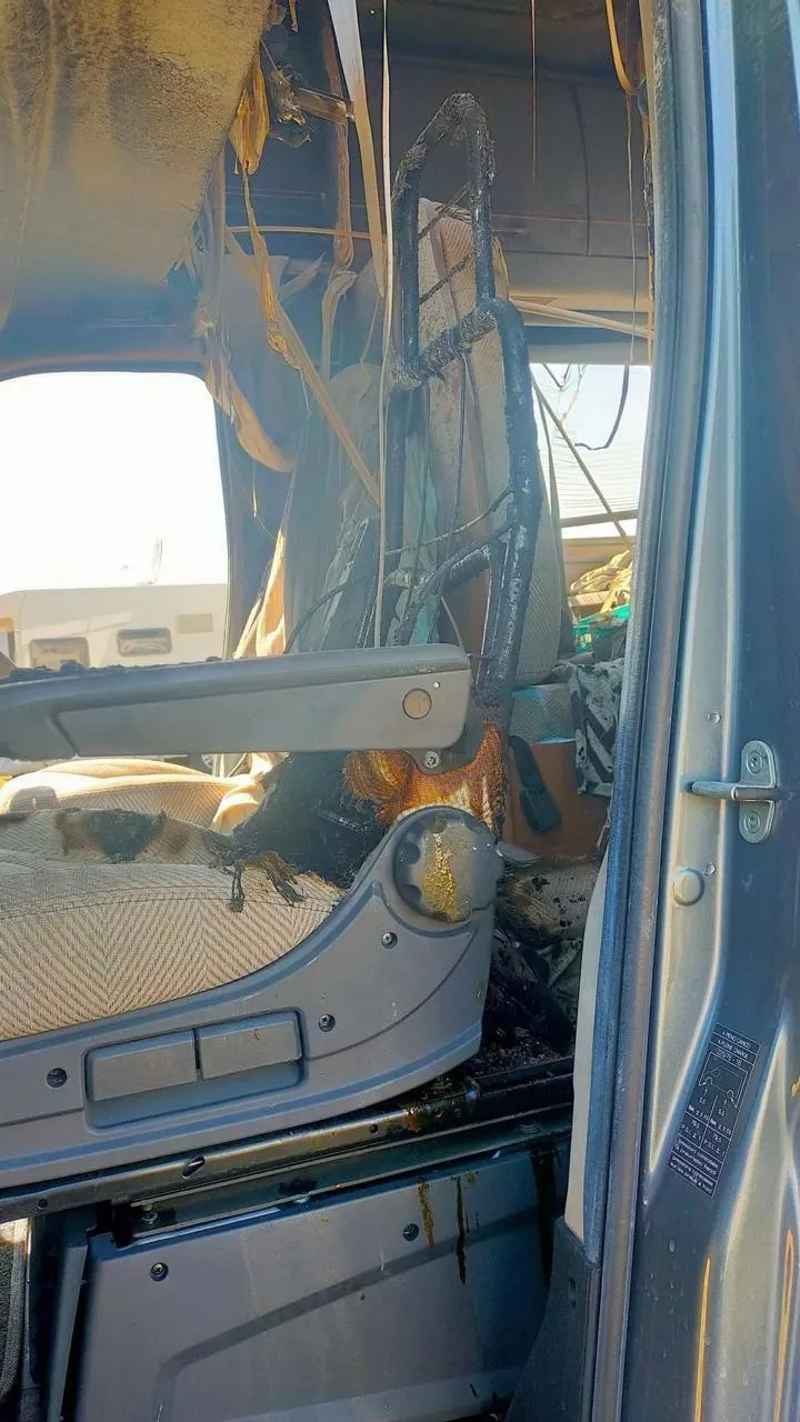 L’incendie a dévasté l’intérieur du camping-car. DR