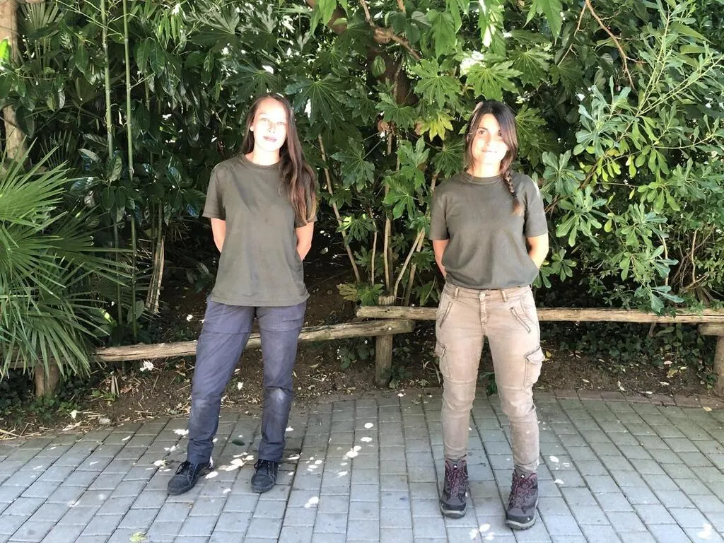 Marine et Alexia sont stagiaires au zoo pendant deux mois : elles auront l’occasion de changer de secteur toutes les deux semaines. Manque sur la photo, Jordan, le troisième stagiaire. © Ouest-France
