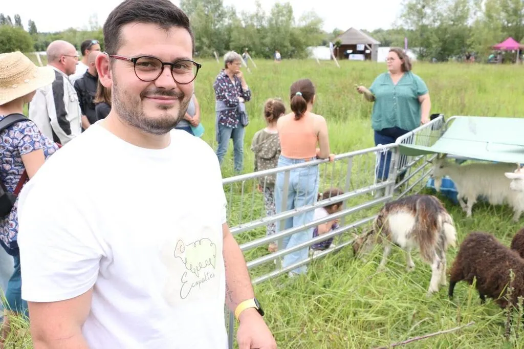 Pierre Giroux, fondateur de la société Ecopattes, lors d’une animation autour de l’écopâturage à la Fête de la nature, samedi 25 mai 2024, sur le site de la Mergeoire à La Flèche (Sarthe). © Ouest-France