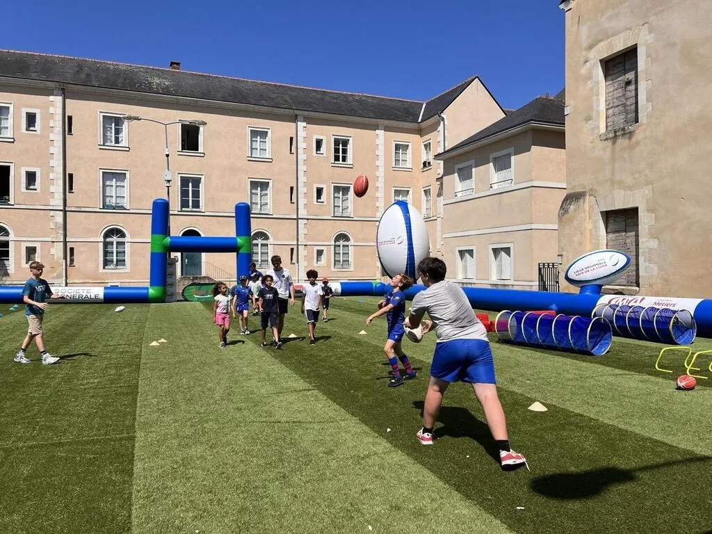 Samedi 24 juin, le bus rugby tour s’est garé place Pape-Carpantier à La Flèche (Sarthe). Un terrain gonflable de rugby a été installé et des stands de jeux permettaient de découvrir la pratique de ce sport encadré par des animateurs.