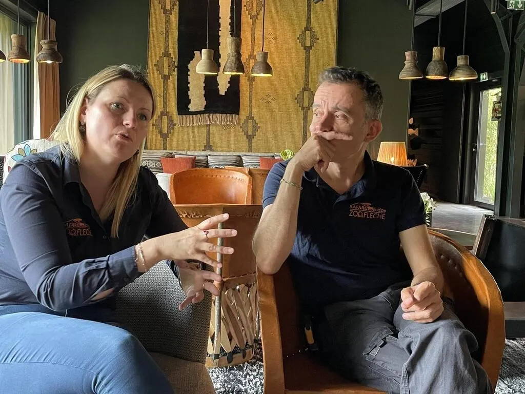 Céline Talineau, directrice du zoo de La Flèche, et Cyril Hue, vétérinaire, ont détaillé les prochaines étapes de la transformation du parc. © Le Maine Libre