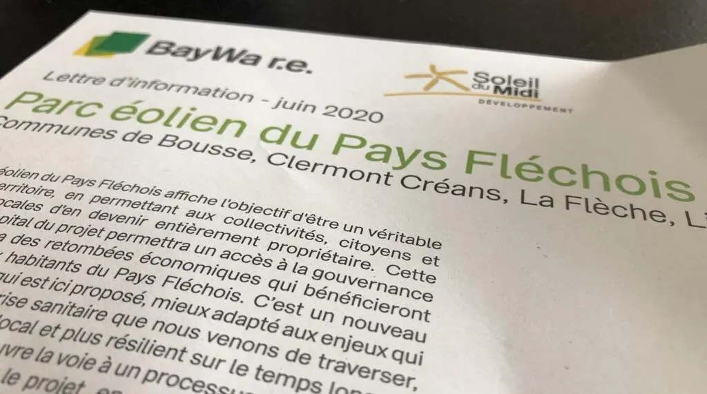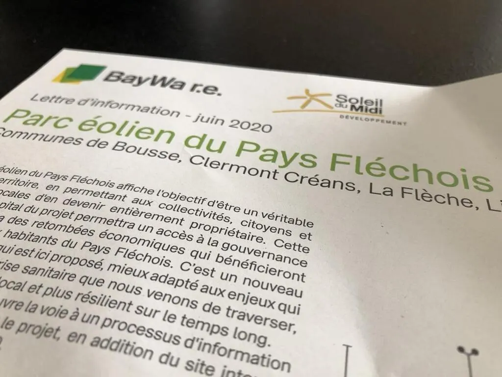 Ces derniers jours, les habitants des communes concernées par le projet de parc éolien en Pays fléchois – Bousse, Clermont-Créans, La Flèche, Ligron – ont reçu dans leur boîte aux lettres un bulletin d’information présentant ses modalités et le mode de financement.