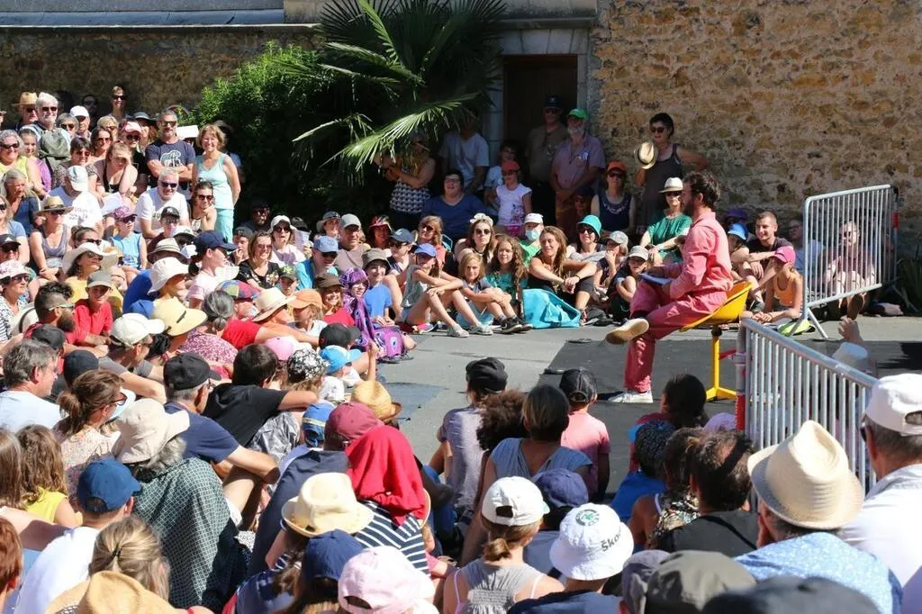 Le clown de la compagnie La Dépliante, avec son spectacle « Starsky Minute », a offert des barres de rire au public, samedi 9 juillet. Face à une importante affluence, beaucoup de spectateurs ont dû suivre le spectacle debout ou se diriger vers un autre spectacle. © Ouest-France