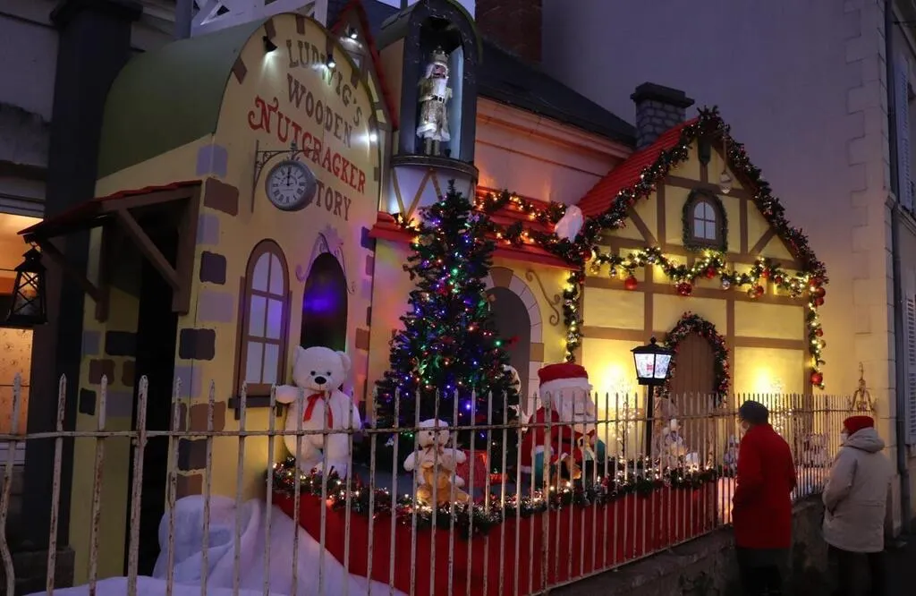 Les voitures ralentissent en passant devant le 9, boulevard de la Gare, à La Flèche (Sarthe), ce vendredi 17 décembre 2021. Il faut dire que le spectacle est impressionnant, avec un décor de Noël grandiose. Une façade de maison bien décorée a été créée. Différentes peluches se tiennent devant, et un Casse-noisettes trône en hauteur. « Je me suis inspiré des villages de Noël Lemax, explique Cédric Beaudouin, qui a conçu ce décor. C’est le résultat d’un an de réflexion et de deux mois de réalisation. »