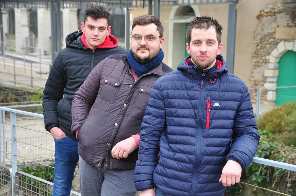Antonin Lanceleur (à droite), le nouveau président des JA du canton, avec Fabien Fouineau et Tim Huau. Le groupe compte 18 membres. © Le Maine Libre