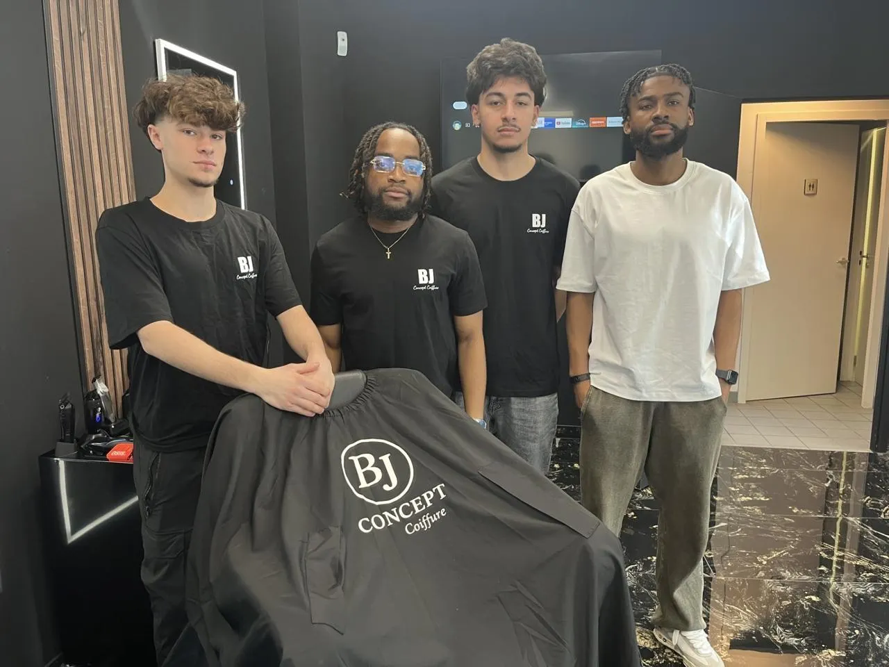 L’équipe BJ Concept de gauche à droite : Keony Lallier ; MB Barber ; Kérim Erene et Pinance Buni Jorge, le gérant. © Le Maine Libre