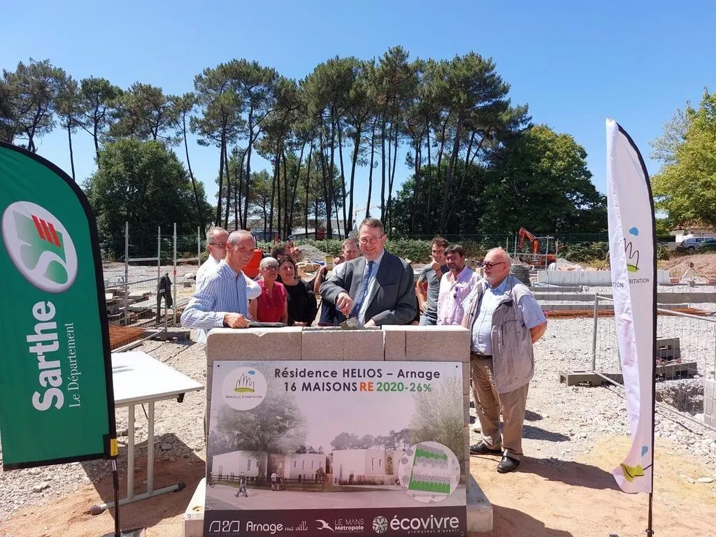 Mercredi 9 juillet 2025, se déroulait la pose de la première pierre de la résidence Hélios, à Arnage (Sarthe). Conçue pour répondre aux enjeux environnementaux, elle comprendra 16 logements individuels : 7 T3 et 9 T4.