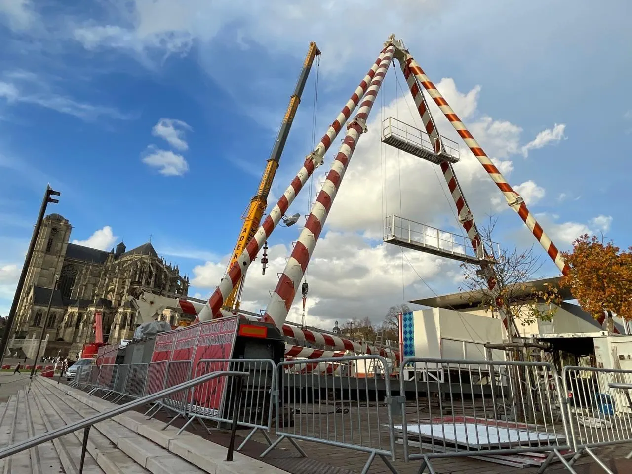 Le montage de la grande devrait être terminé au cours du week-end, place des Jacobins au Mans (Sarthe). © Ouest-France