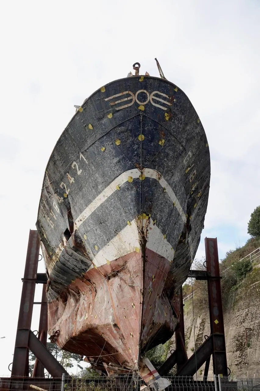 L’épave du « Bugaled Breizh », lors de son renflouement, à l’été 2004. © Vincent Mouchel/ Archives Ouest-France