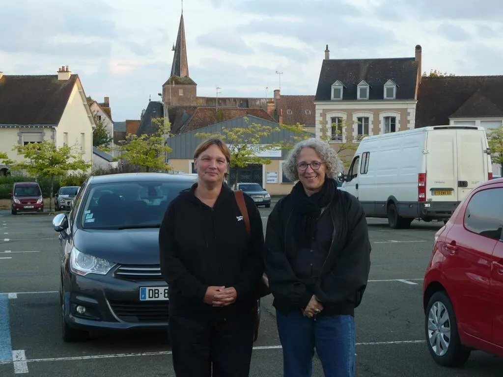 Sandrine Guiard, 4e adjointe, et Léa Duval, la maire, ici place Dufour, ont pris note des remarques des habitants lors d’une réunion publique pour sa rénovation. © Le Maine Libre