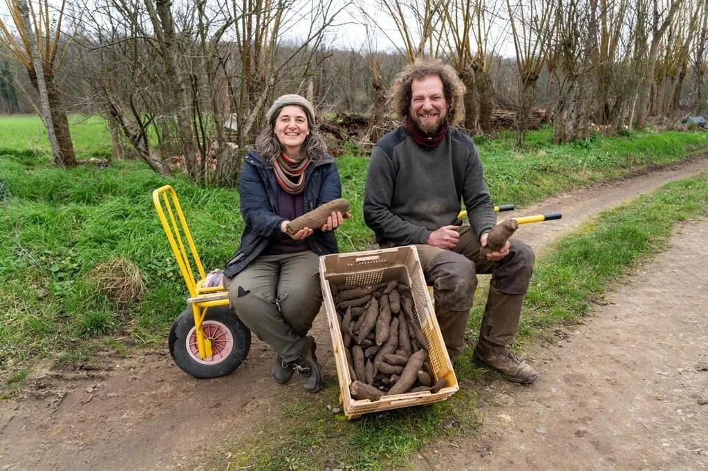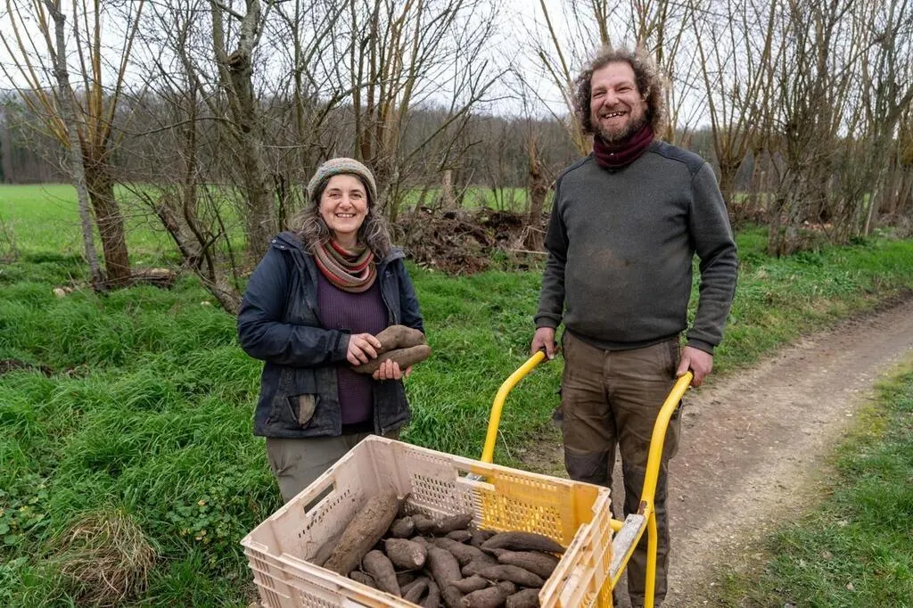 Damien Fihey et Isabelle Perry cultivent des poires de terre. Un légume qui, selon eux, gagne à être connu. © Le Maine Libre Xavier SARRAT