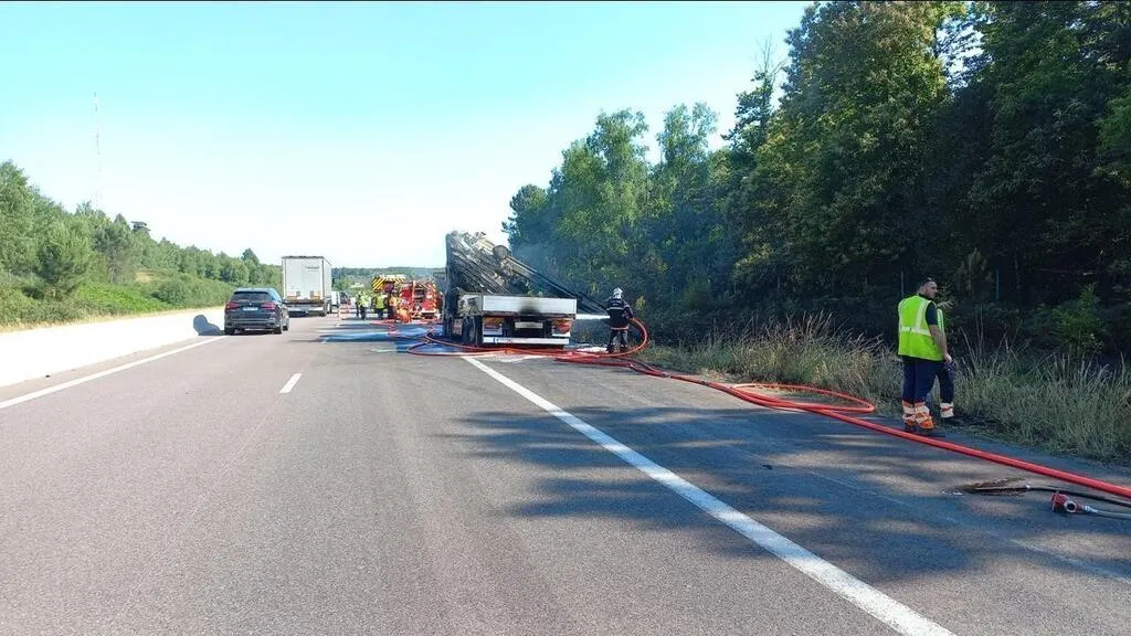 La remorque d’un camion prend feu sur l’autoroute A28 en Sarthe, la circulation désormais repartie... |