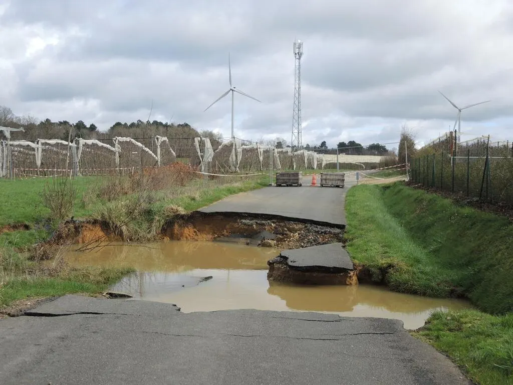 La route de la Petite Morlière s’est affaissée, à Lavernat. © Le Maine Libre