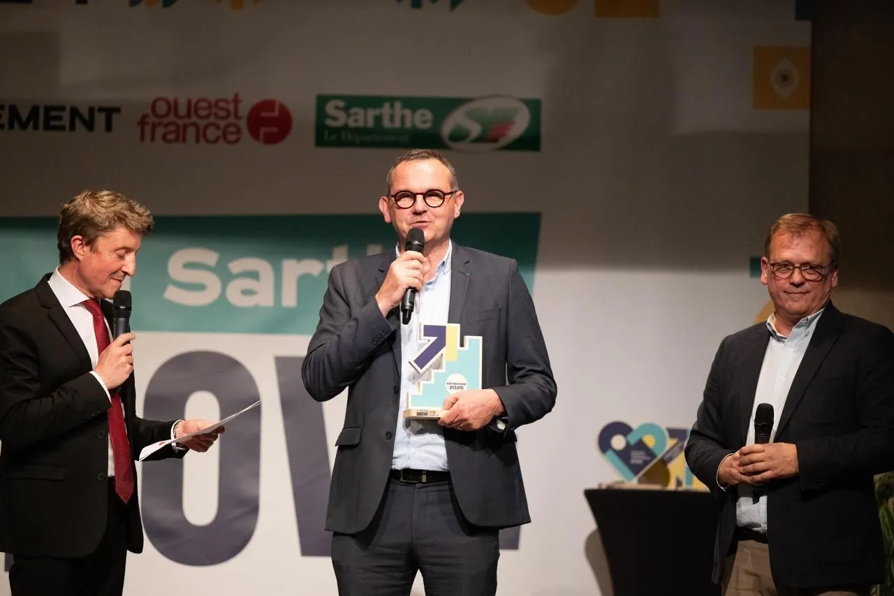 photo  la société manikheir, qui produit des gants en nitrile pour les milieux hospitaliers, pharmaceutiques ou encore l’agroalimentaire, représentée par son directeur gérard heuliez, avait été récompensée du trophée de l’entreprise de l’année lors de la cérémonie de la sarthe innove, en avril 2025.  ©  david ademas / ouest-france 2