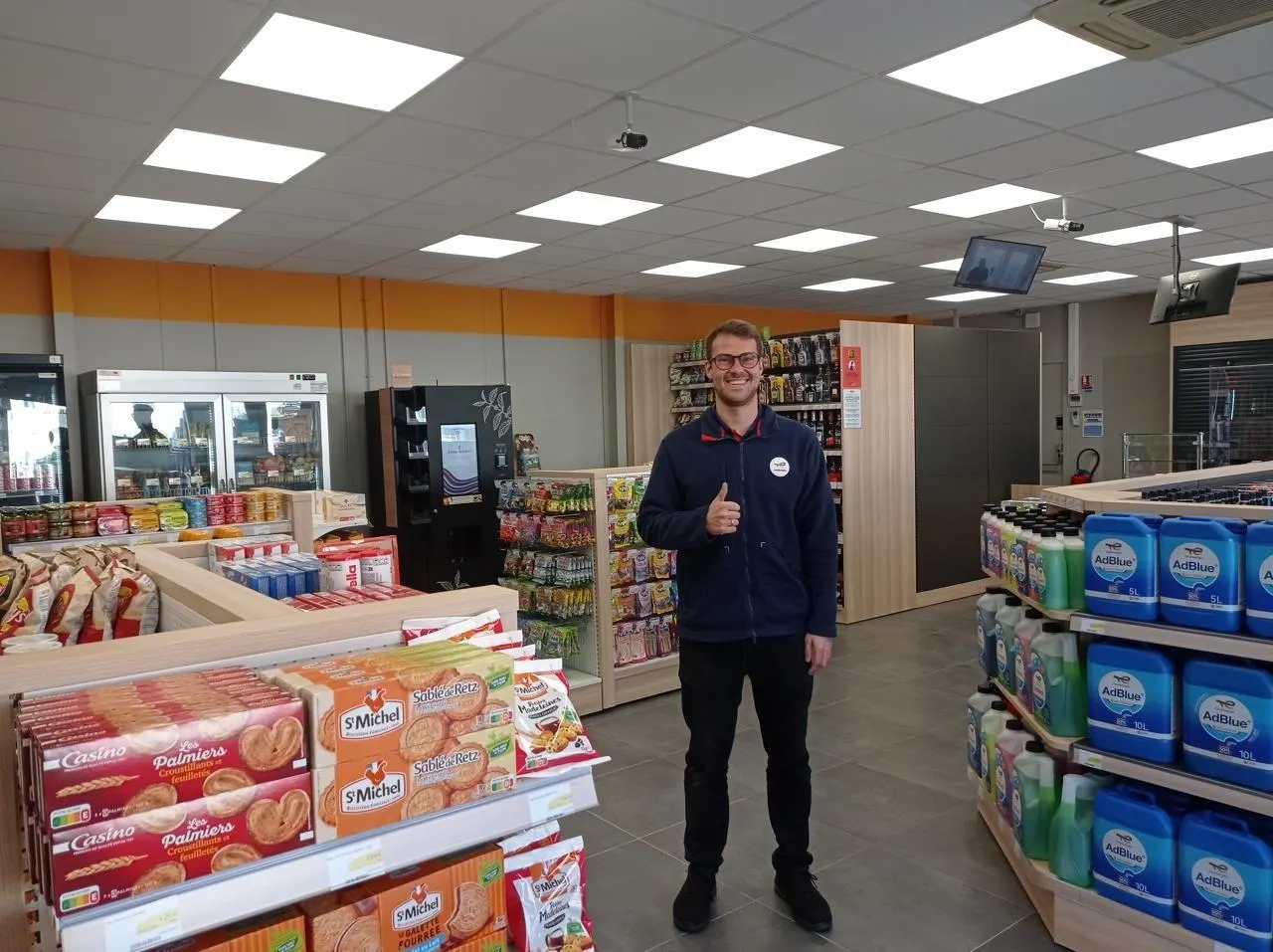 Alex Bohnert, gérant, au cœur du nouvel espace boutique épicerie et dépannage auto de sa station Total Énergies. © Ouest-France