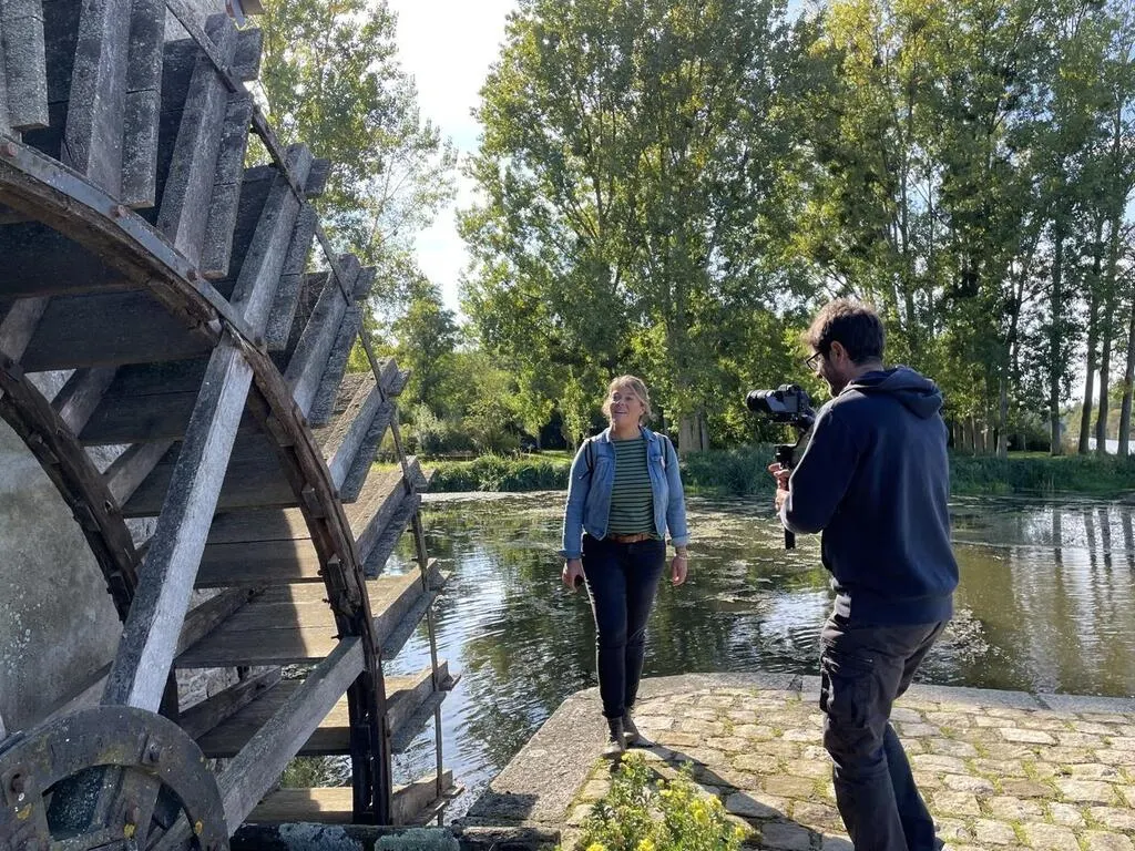 L’animatrice Julie Hattu, ici en tournage au Moulin d’Ignières, ancienne propriété de Marcel Pagnol, à Parcé-sur-Sarthe. © Les Nouveaux Jours Productions