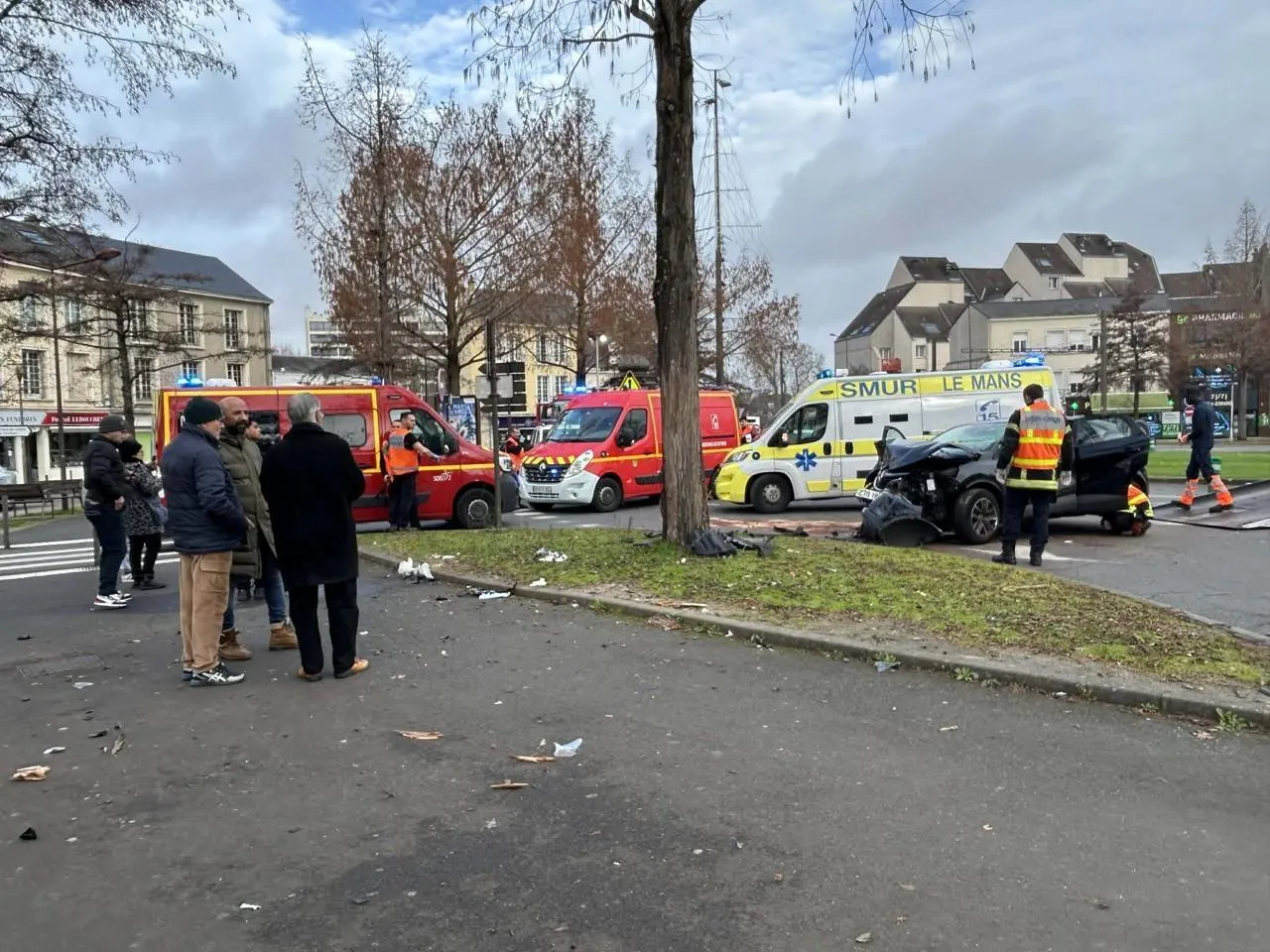 Un accident spectaculaire s’est produit ce mercredi 10 décembre 2025 en fin de matinée, place Adrien-Tironneau, dans le quartier de Pontlieue au Mans. De nombreux témoins ont assisté à la scène. Une femme et un enfant étaient à bord du véhicule. Leur pronostic vital n’est pas engagé.