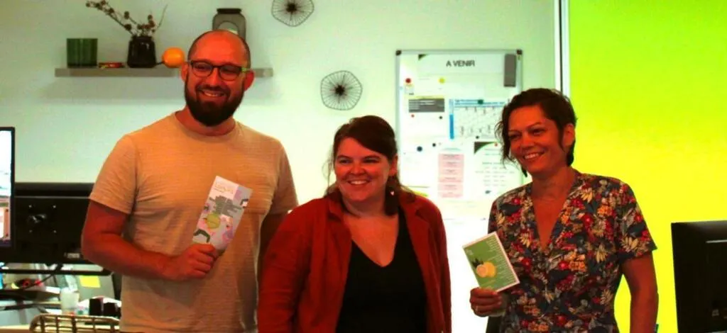 Charly Blin, référent des ateliers loisirs, Manon Thierry à la Ruche, et Émilie Georges en charge des ateliers au Val’Rhonne, lors d’une présentation. © Ouest-France