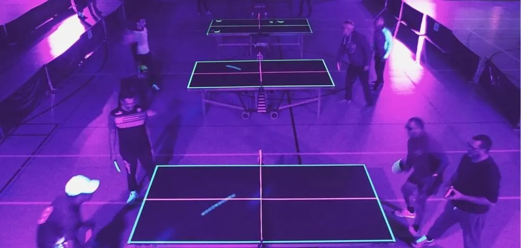 Le darkping consiste à jouer au tennis de table dans le noir, avec des éléments fluos. © Gaëtan Côme