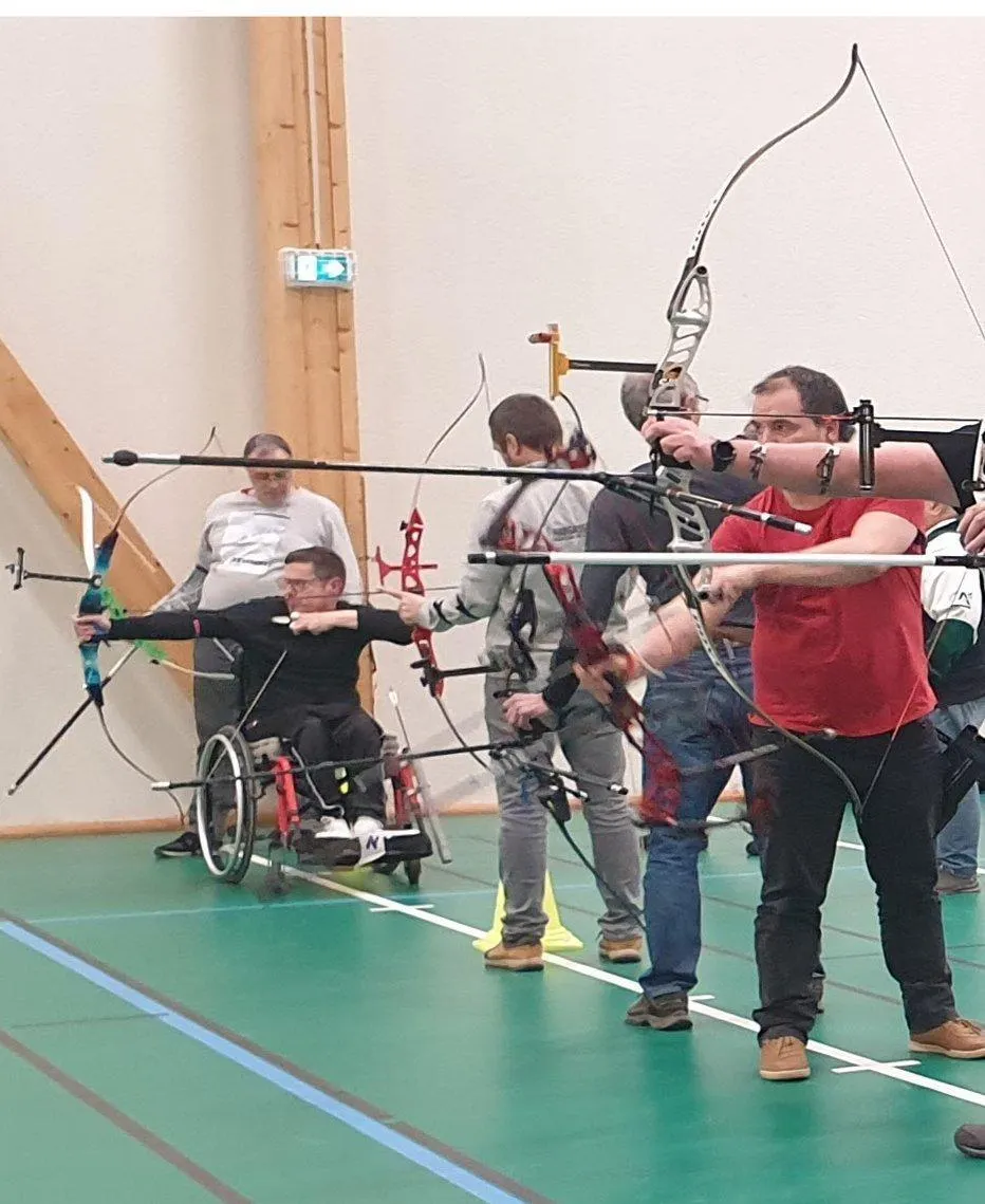 Des archers s’entraînent au gymnase. © Le Maine Libre