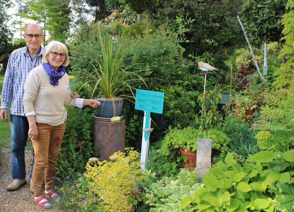 Bertrand et Michèle Garreau, du jardin bleu, convient les visiteurs à un concert d’oiseaux  Ici, pas de réseau, juste le « Tweet » des oiseaux. Nous jouons souvent à reconnaître, au printemps, les chants des oiseaux dans notre jardin bleu situé en pleine agglomération. Nos charmants amis s’égaillent dans les endroits que nous avons aménagés durant l’hiver. Les plus bruyants sont les pinsons. Le roucoulement des tourterelles calme le jacassement de la pie. Quelques beaux merles chantent une ritournelle couvrant le tintement aigu de la bergeronnette et le gazouillis des hirondelles. »