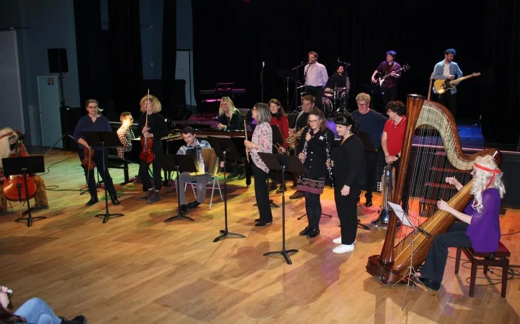 19 professeurs de musique seront en concert, samedi. Au Val’Rhonne, ils ont présenté, en avant-première, le concert The Beatles. © Ouest-France