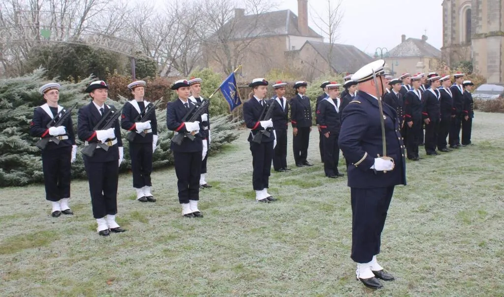 Le fanion a été confié par le président à la garde constituée de six stagiaires en armes. Le capitaine de frégate a rappelé qu’il s’agit de la 21e promotion d’apprentis marins en Sarthe.  Cette cérémonie est un événement marquant dans le parcours des stagiaires. Il motive leur engagement au service de la défense. Il concrétise le lien qui uni les forces armées à la Nation.Â
