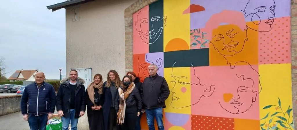 L’ancienne porte en chêne de ce local appartenant au Sivom, a dû être démontée et remplacée par un mur recouvert d’un simple enduit. L’occasion s’est présentée de lancer un projet permettant de mettre en avant ces lieux de rencontres intergénérationnels. Mathilda et Laura, signent donc cette fresque représentant des visages toutes générations confondues. Les deux artistes animeront un atelier de street art à partir de 27 avril prochain.
