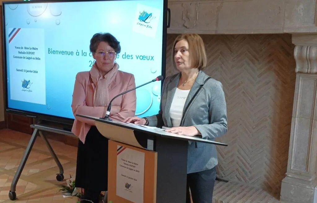 Lors de la cérémonie traditionnelle des vœux à la population, Nathalie Dupont, maire de Laigné-en-Belin, a annoncé la grande nouvelle, en compagnie de Mathilde Plu, maire de Saint-Gervais-en-Belin.