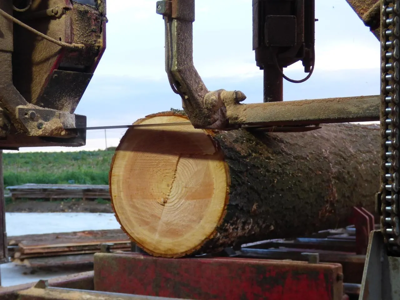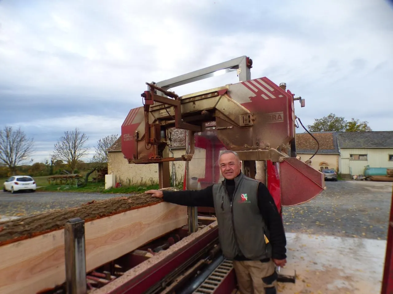 Depuis 2000, la scierie mobile de Pescheseul offre un service à domicile. Dans un rayon d’une centaine de kilomètres autour d’Avoise (Sarthe), elle vient sur place transformer les grumes en planches et bastaings sur mesure.