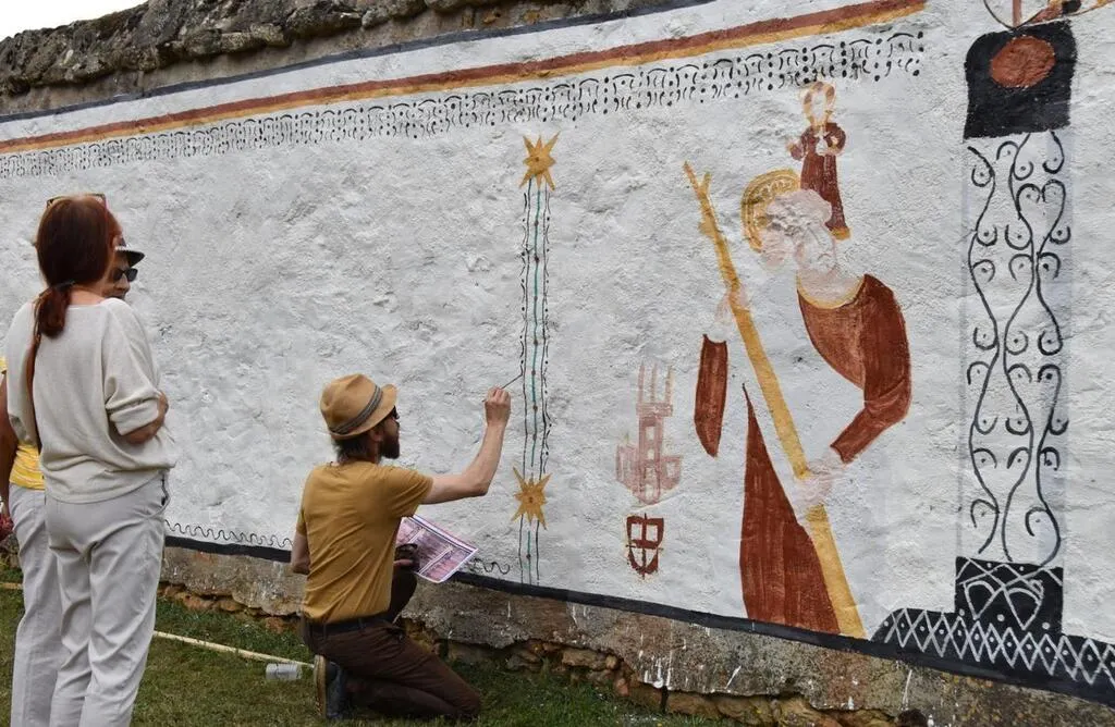 La réalisation collective d’une fresque éphémère sur le mur du prieuré lors de l’édition 2022, s’inscrivait parfaitement dans l’esprit du Boucan des arts. © archives Le Maine Libre